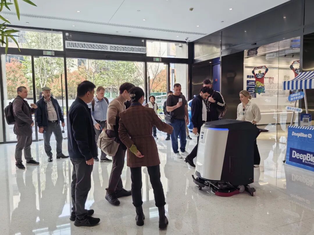 在深兰科技团队的介绍下,来访代表参观了企业展厅,系统了解公司围绕“基础算法—视觉大模型—具身智能—群体智能—智能装备”构建的人工智能技术体系。 现场展示的多款智能设备均搭载深兰自主研发的视觉导航大脑,能够通过视觉感知与环境理解实现路径规划、自主决策与任务执行,在复杂环境中保持稳定运行能力。现场演示的清洁类智能装备,直观呈现了相关技术在真实场景中的落地效果,吸引来访嘉宾驻足交流。